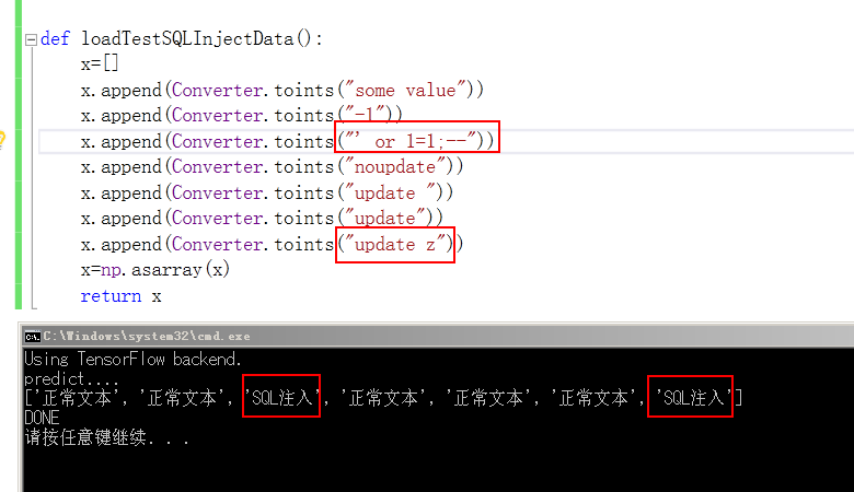 以上这篇使用keras做SQL注入攻击的判断(实例讲解)就是小编分享给大家的全部内容了,希望能给大家一个参考,也希望大家多多支持脚本之家。