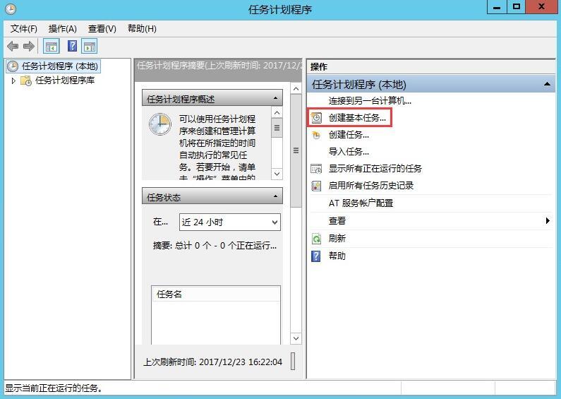 打开了任务计划程序之后,我们点击右侧的“创建基本任务”: