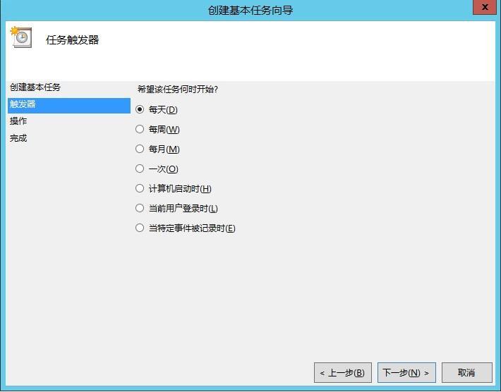点击下一步之后,我们需要设定任务的执行频率,我选择的是“每天”: