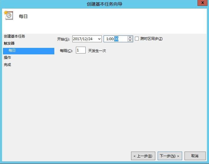 再次点击“下一步”,设置任务执行的时间,我选择了夜深人静的1点: