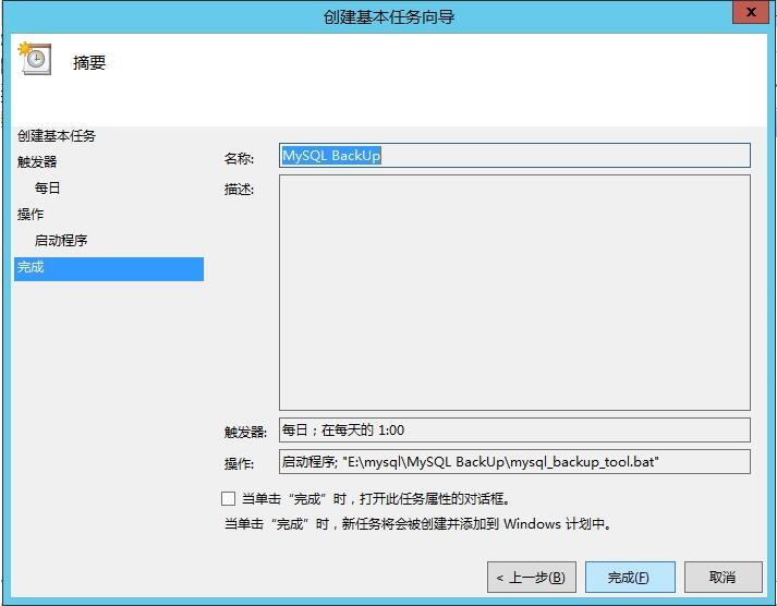 至此,在Windows环境下自动备份MySQL的设置就全部完成了。