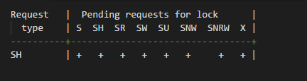 显然MDL_SHARED_READ(SR) 和MDL_SHARED_HIGH_PRIO(SH)是不兼容的需要等待。
