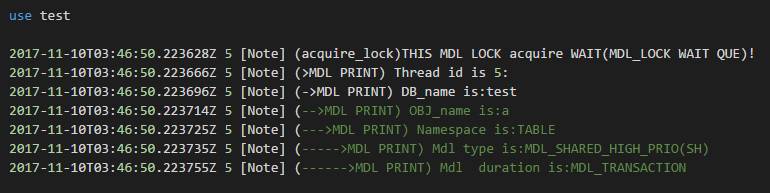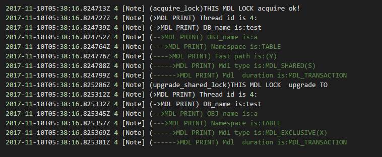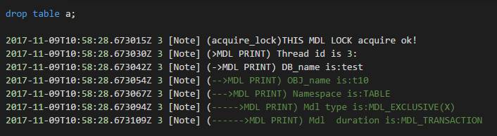 方式一:笔者在MDL LOCK源码加锁函数处加日志输出,如果要分析各种语句加MDL LOCK的类型还只能用这种方式,因为MDL LOCK加锁往往一闪而过,performance_schema.metadata_locks 没有办法观察到。