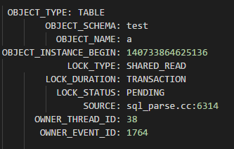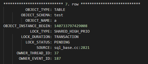 两种方式都能观察到MDL_SHARED_HIGH_PRIO(SH)的存在并且我模拟的是处于堵塞情况下的。