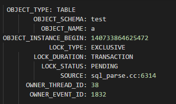 其中EXCLUSIVE就是我们说的MDL_EXCLUSIVE(X)它确实存在当前处于堵塞