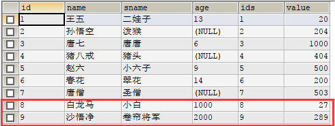 第二步:发现数据库中没有小白龙和沙悟净,需要添加上: