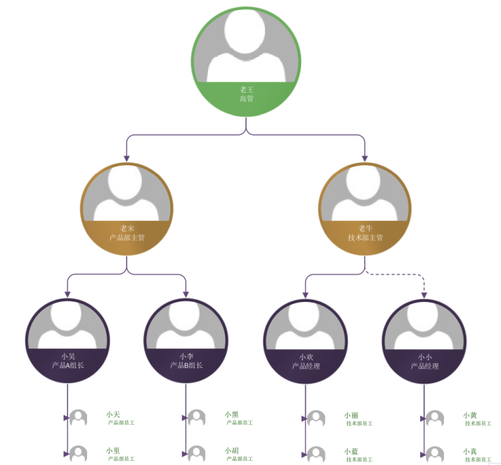 举个栗子:现在有一个要存储一下公司的人员结构,大致层次结构如下: