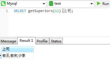 这里肯定没法直接查,只能用循环进行循环查询,先查直接上司,再查直接上司的直接上司,依次循环,这样麻烦的事情,还是得先建立一个存储过程: