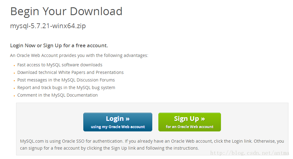 选择操作系统和版本,我是64位win10,点击 Download 后会跳到Oracle登录页面要求登录后才能下载: