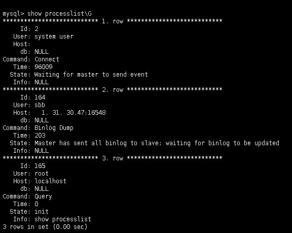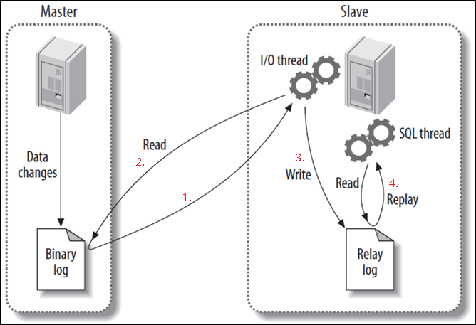 (4). slave重现中继日志中的消息,从而改变数据库的数据。