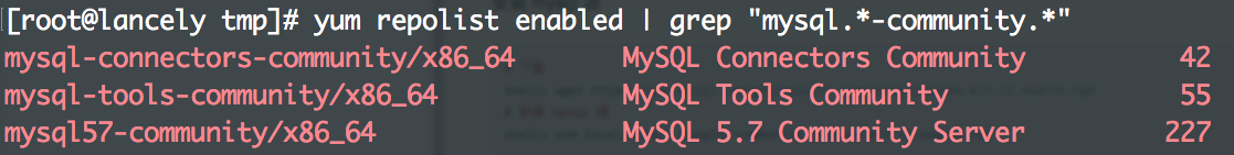 shell> yum repolist enabled | grep "mysql.*-community.*"