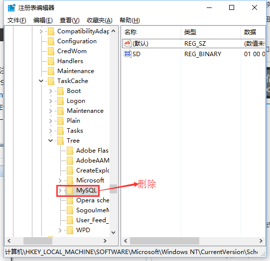 step3:查出的MySQL注册表直接删掉
