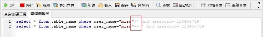 #与--号后面的被注释掉,无论密码输入的是什么,都能正确查询。请点击此处输入图片描述