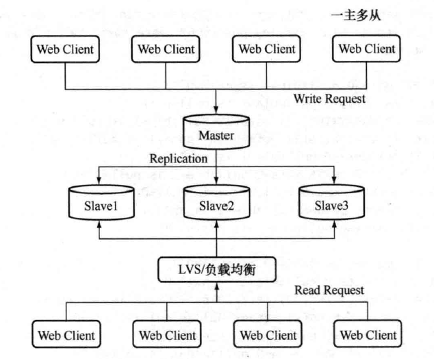 1、一主多从架构在主库读请求压力非常大的场景下,通过配置一主多从复制架构实现读写分离,把对实时性要求不是特别高的读取请求通过负载均衡分布到多个从库上,从而降低主库的读取压力,如图: