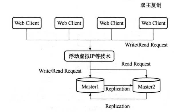 3、双主复制/Dual Master架构双主复制/Dual Master架构特别适合于DBA做维护需要主从切换的场景,通过该架构避免了重复搭建从库的麻烦,如图: