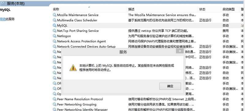 cmd输入services.msc进入服务,找到Mysql直接点启动此服务,会提示失败!