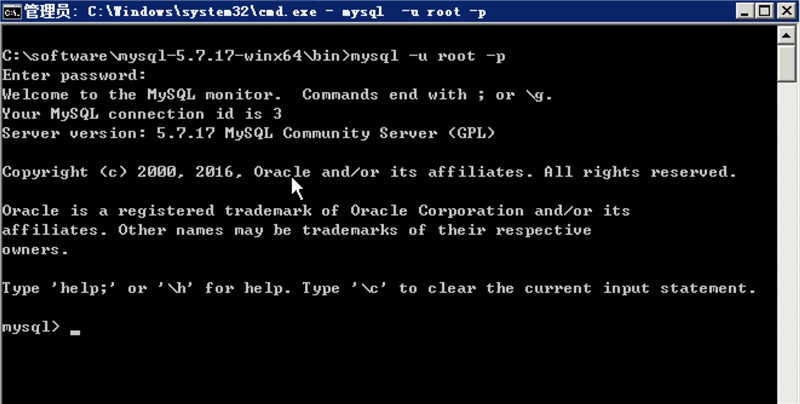 7.然后打开cmd在mysql/bin目录下mysql -u root -p密码直接回车: