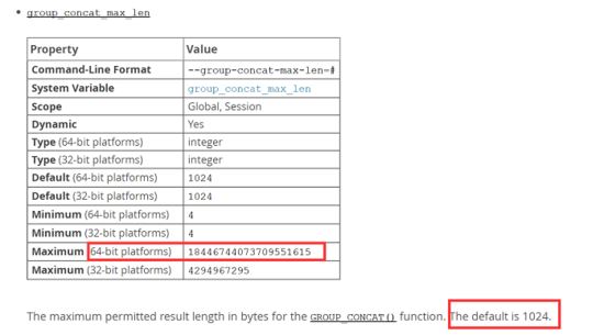只要调整 group_concat_max_len 到最大值就行了,官方在MySQL5.7的手册中给出了如下定义: