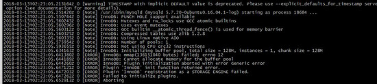 [ERROR] InnoDB: mmap(136151040 bytes) failed; errno 12 [ERROR] InnoDB: Cannot allocate memory for the buffer pool [ERROR] InnoDB: Plugin initialization aborted with error Generic error [ERROR] Plugin 'InnoDB' init function returned error. [ERROR] Plugin 'InnoDB' registration as a STORAGE ENGINE failed. [ERROR] Failed to initialize plugins. [ERROR] Aborting