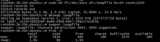 dd if=/dev/zero of=/swapfile bs=1M count=1024 mkswap /swapfile swapon /swapfile