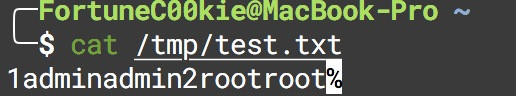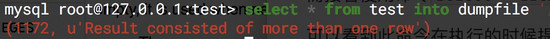 而接着使用命令 select * from test into dumpfile '/tmp/test.txt' 使用dumpfile进行导出