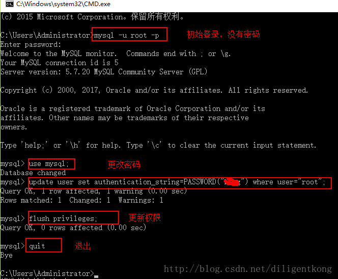 到此,数据库更改密码完毕。接下来介绍,数据库常用命令