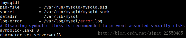 修改mysql.conf.d文件夹下的mysqld.cnf,在文件末尾追加character-set-server=utf8,然后保存即可。