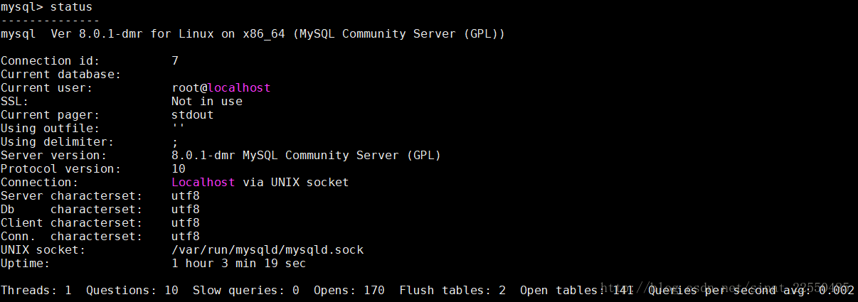 在控制台输入status后,即可显示以下信息。