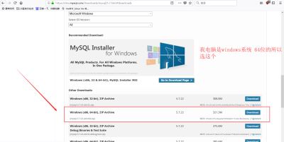 4.选择5.7.22版本,windows系统类型