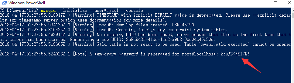 4.进入安装目录的bin文件夹下,以管理员身份运行CMD,如D:mysql\bin,然后初始化数据库,记住分配的密码