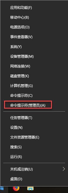 1、系统左下角,Windows徽标处右键,选择“命令提示符(管理员)”: