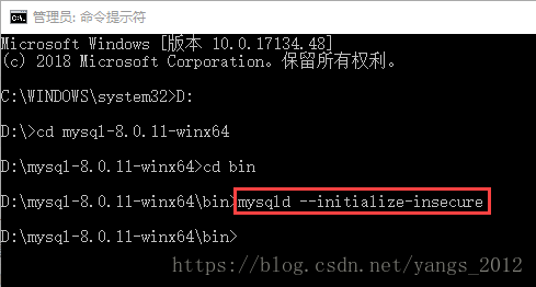 命令:mysqld –initialize-insecure