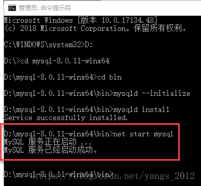 4、为Windows系统安装MySQL服务