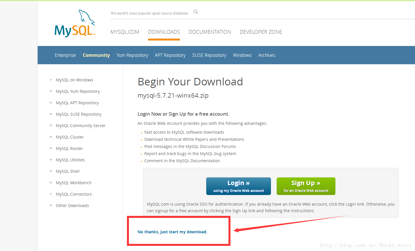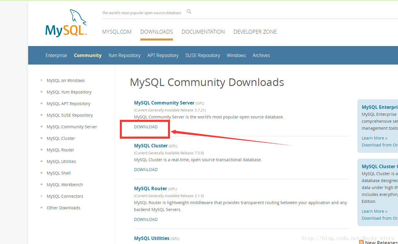 1.首先,你要下载MySQL解压版,下载地址,图解: