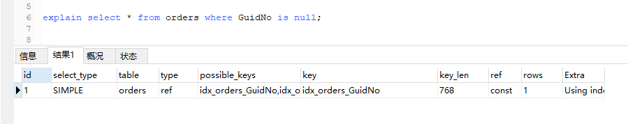 看了别人写的文章,有说“应尽量避免在where 子句中对字段进行null 值判断,否则将导致引擎放弃使用索引而进行全表扫描”,实测没有全表扫描。