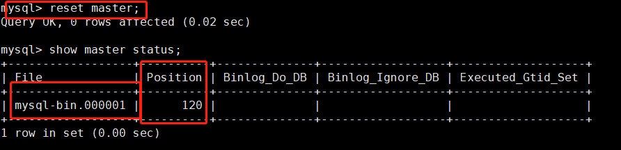 mysql> change master to master_host='172.16.1.211', master_user='repluser',master_password='123456', master_log_file='mysql-bin.000001',master_log_pos=120;