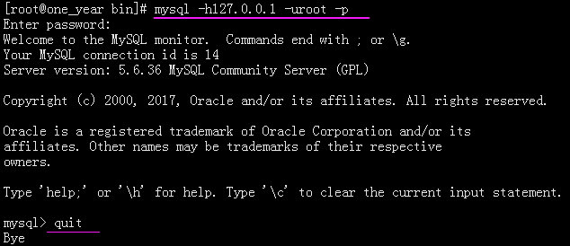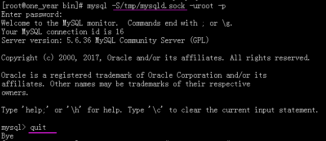 mysql -uroot -p'password' mysql -h127.0.0.1 -uroot -p'password' mysql -S/tmp/mysql.sock -uroot -p'password' mysql -uroot -p -e "show databases"