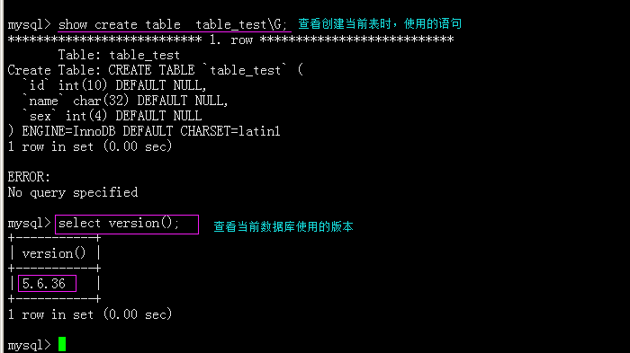 查看某张表创建时输入的命令:show create table table_name\G;