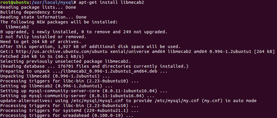 执行完apt-get install libmecab2 后,让设置mysql密码。