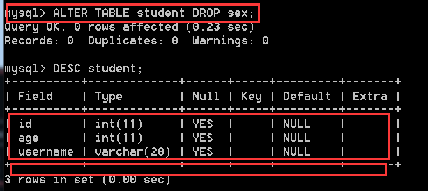 格式:ALTER TABLE<表名称> DROP<字段名>;
