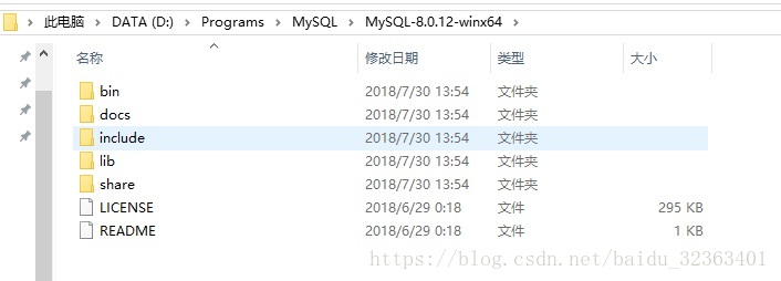 从解压的文档结构中,我们可以看到里面没有my.ini配置文件,这里需要自己创建my.ini配置文件。