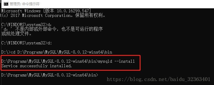 注:在注册服务时,一定要使用管理员身份执行,否则安装服务时会被拒绝。