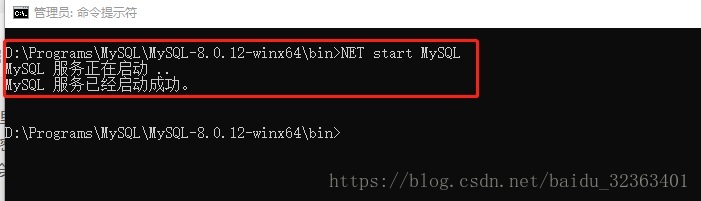 在终端中使用指令“NET start MySQL”,即可启动数据库服务: