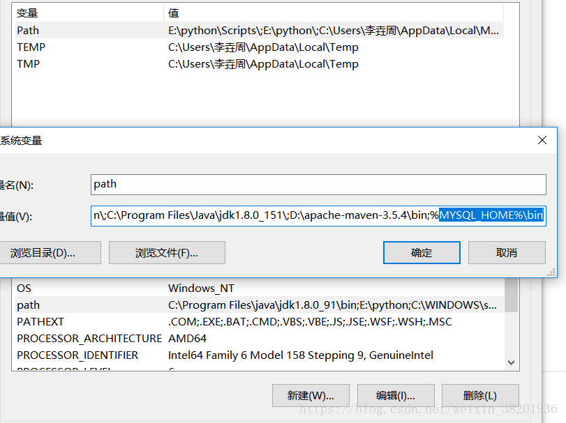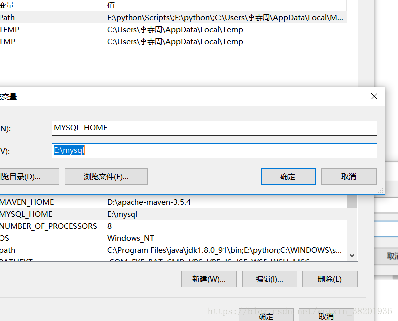 在系统变量部分新建一个变量名:MYSQL_HOME, 变量值:E:\mysql