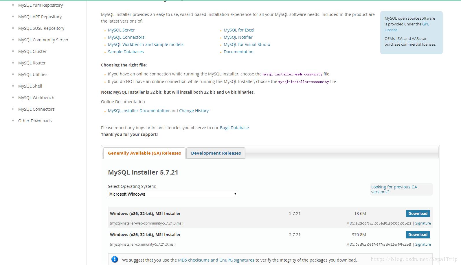 根据你电脑的系统选择对应的mysql数据库下载即可。