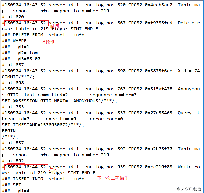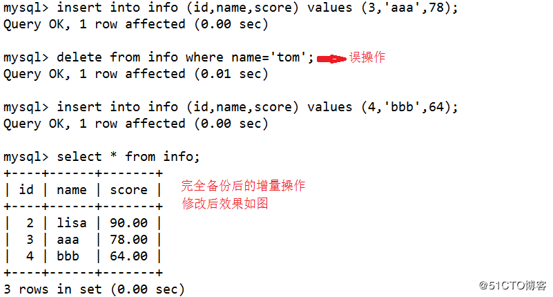 mysql>delete from info where name='tom'; #误操作