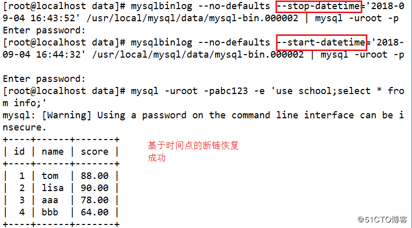 mysqlbinlog --no-defaults --start-datetime='2018-09-04 16:44:32' /usr/local/mysql/data/mysql-bin.000002 | mysql -uroot -p