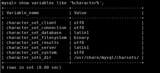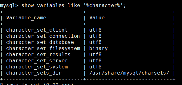 show variables like '%character%';