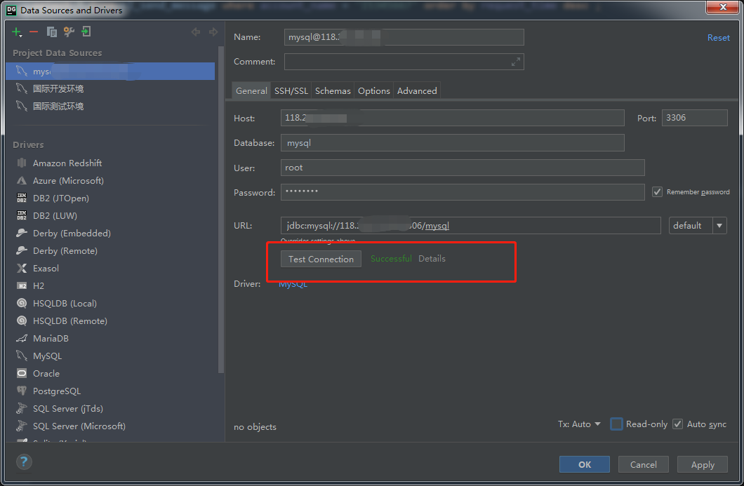 我们看到mysql连接测试成功。