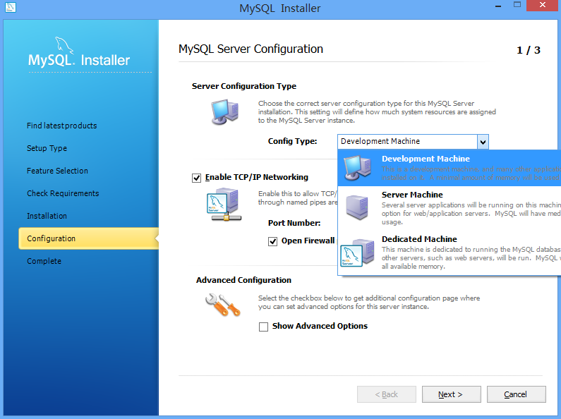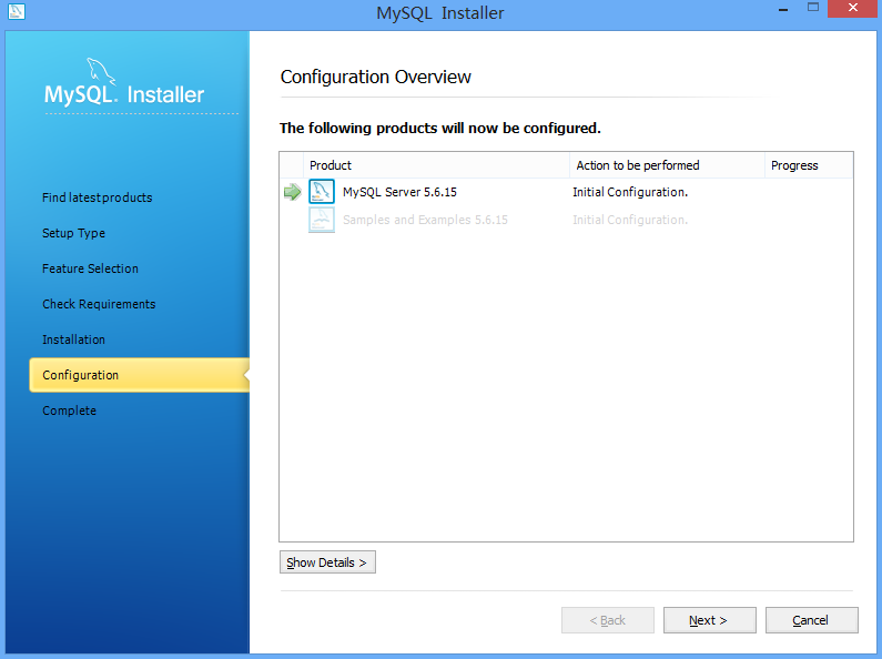 5)安装进度结束后,进入MySQL Server配置界面,如下: